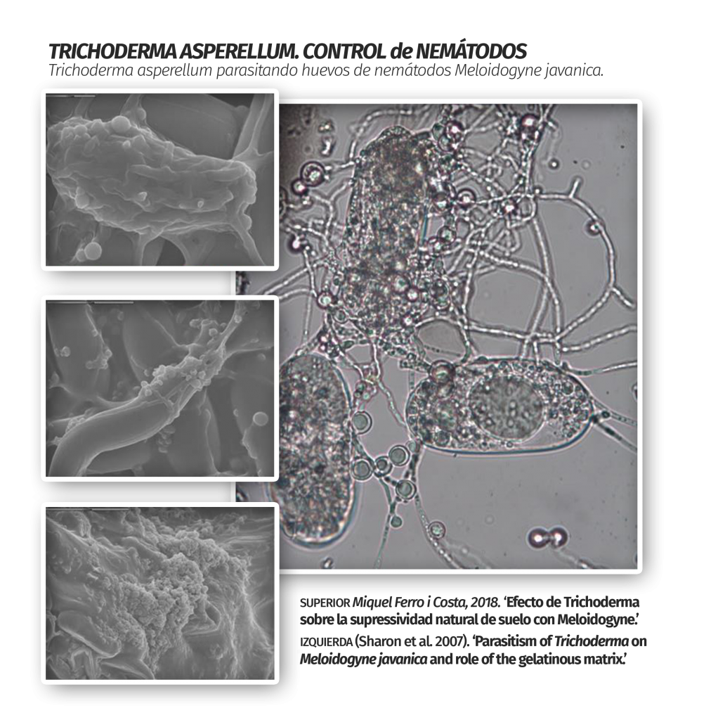 Además, la aplicación de métodos culturales como el uso de melaza, por ejemplo, junto con el uso de microorganismos como Trichoderma spp. que ayudan a combatir las enfermedades mejorando el sistema radiculafr y potenciando el crecimento de las plantas, pueden ser un método más efectivo, incluso más efectivo que los tratamientos químicos de referéncia en el control de nemátodos..