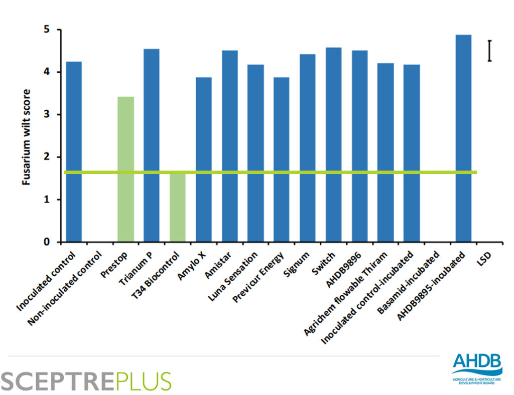 Estudios como el programa SceptrePlus, realizado por Agriculture and Horticulture Development Board UK (AHDB) ponen en evidencia los resultados de nuestro producto en comparación con otros del mercado (con mejores resultados que químicos y biológicos).