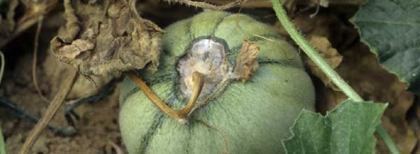 Daño visible en fruto causado por Fusarium oysporum f.sp. melonis