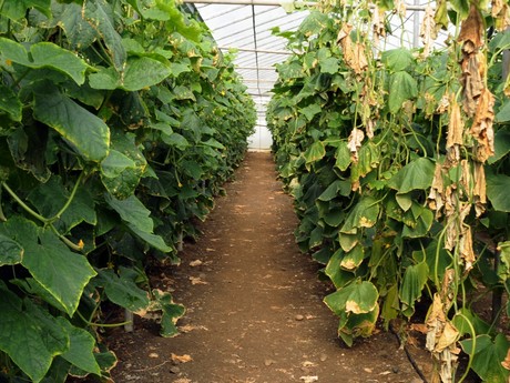Plantas de Pepino afectada por Fusarium oxysporum