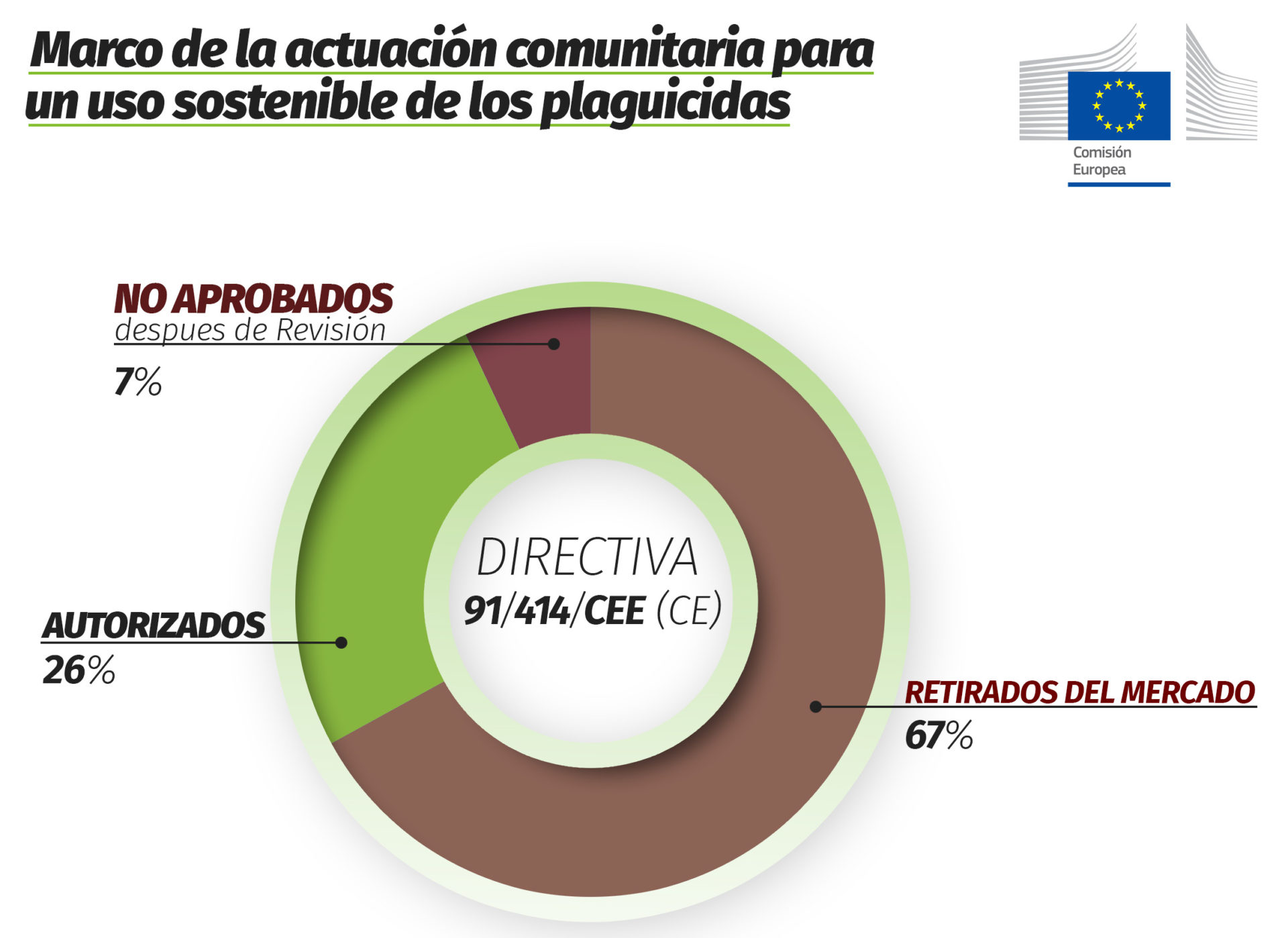 En efecto, en Europa a través de la Directiva 91/414/CEE y posterior Regulación CE 1107/2009 los pesticidas autorizados se revisaron y su uso se armonizó en los países europeos. Durante esta evaluación, cerca del 70% de las materias activas se prohibieron en el Mercado.
