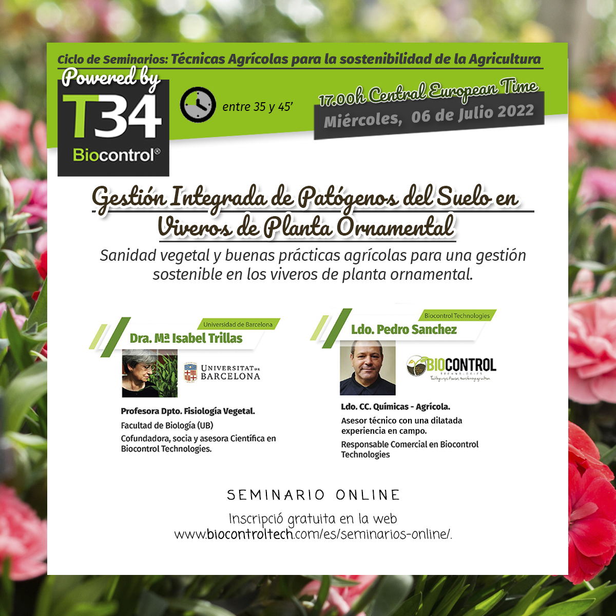 (diversas cepas de Trichoderma spp, para el control de Pythium), como la cepa T34 de Trichoderma asperellum del producto T34 Biocontrol con un rango de temperatura muy próximo a P. aphanidermatum, P. ultimum y P.irregulare. Trichoderma es un organismo mediterráneo que se mueve por este rango de temperaturas. Cada Pythium debería de tener su Trichoderma óptimo (basándose en este rango de temperaturas) por eso T34 es muy efectivo en invernadero o situaciones de mucho calor.