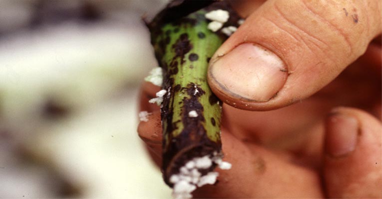 Las enfermedades producidas por bacterias pueden producir enzimas que degradan las paredes de las plantas e infectan tanto las partes aéreas como las raíces y los órganos de reserva.