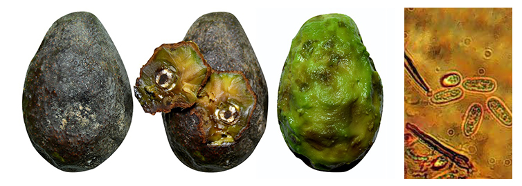 Antracnosis en fruto e imagen de microscopía