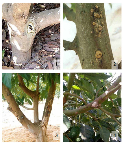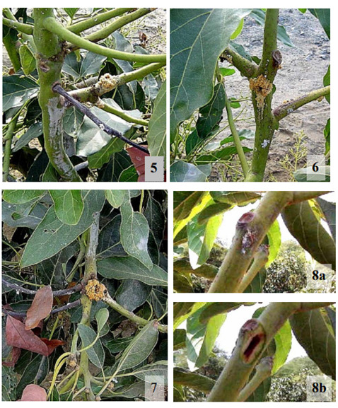 Un estudio reciente demostró que según las condiciones agro-climáticas, y en concreto en el norte de Perú, la muerte regresiva del palto y la chancrosis se ve principalmente afectada por Lasiodiplodia theobromae (2).