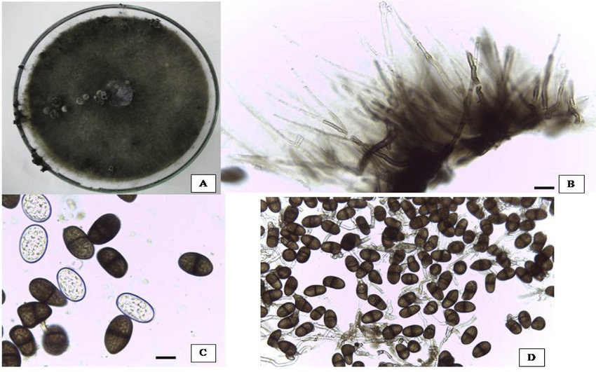 Es un hongo que presenta un desarrollo micelial de color blanco, tornándose posteriormente de color cenizo oscuro hasta volverse negruzco. Las hifas son septadas, formando conidióforos cortos y simples que a posteriori forman conidios (1).