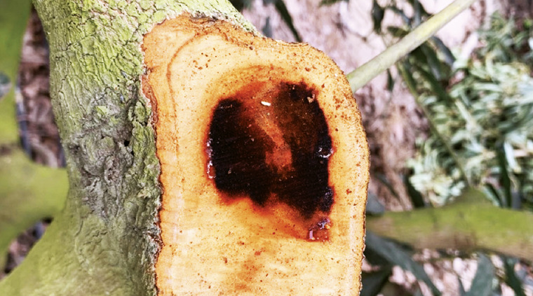 Chancros/cancro: Tejido necrótico o muerto, es un síntoma de enfermedad de las plantas causada por hongos patógenos.