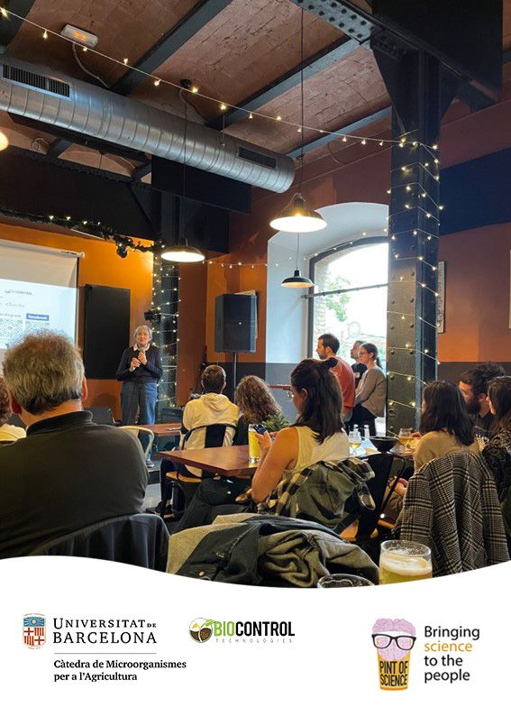 El pasado 24 de mayo, Biocontrol Technologies, empresa líder en soluciones biológicas para el control de enfermedades y plagas en cultivos, participó por primera vez en el evento Pint of Science de Barcelona. El título del evento, “Las plantas y los microorganismos ¿Amigos o Enemigos?”, despertó un gran interés entre los asistentes que buscaban conocer más sobre las interacciones entre estos dos actores fundamentales en los ecosistemas.