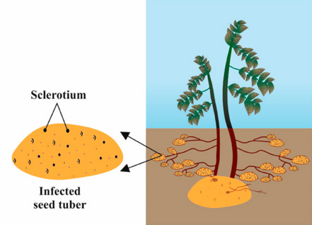 Chaudhary, S., Lal, M., Sagar, S. et al. (2024) Black scurf of potato: Insights into biology, diagnosis, detection, host-pathogen interaction, and management strategies. Tropical Plant Pathology, 49, 169–192 . https://doi.org/10.1007/s40858-023-00622-4
