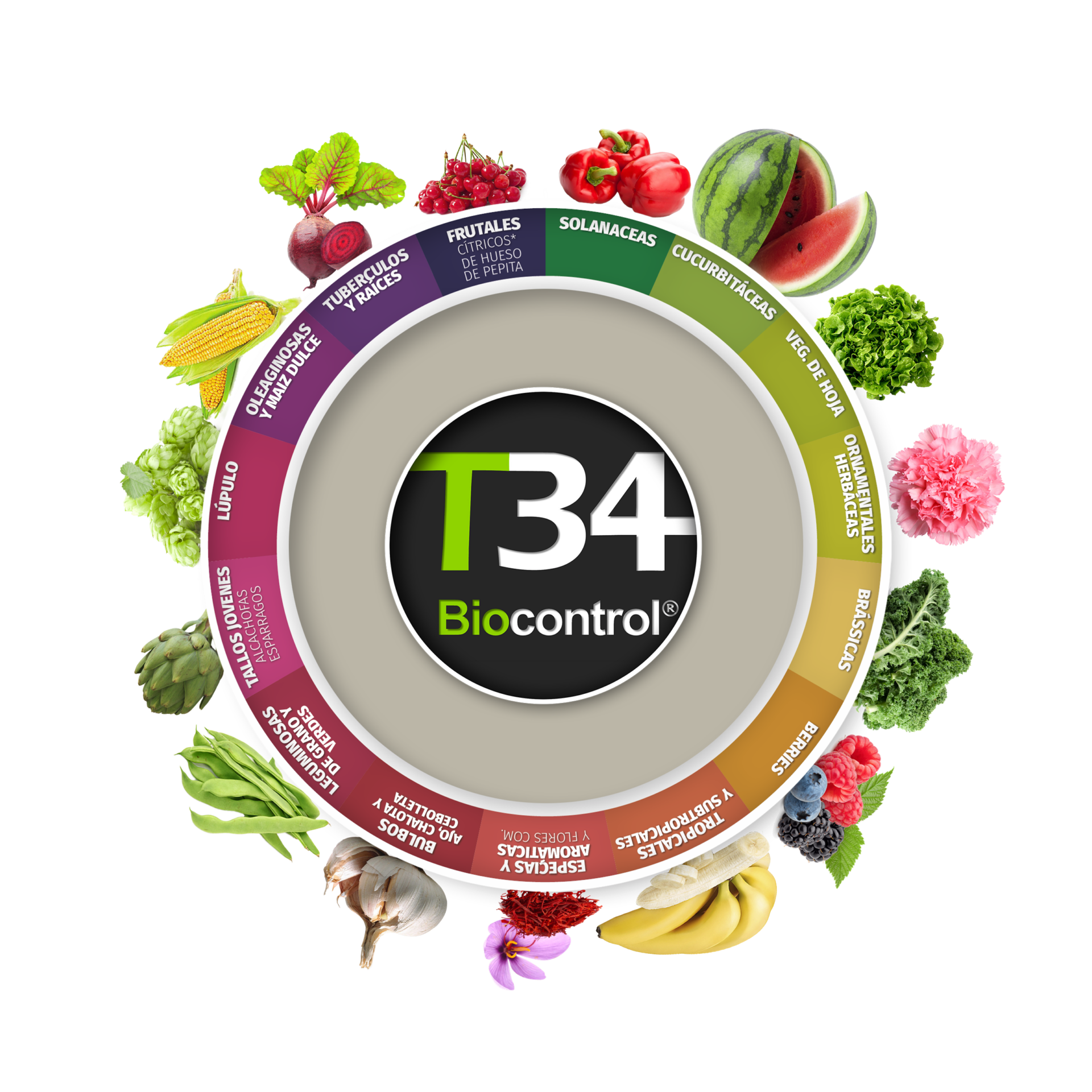 T34 es compatible con múltiples insumos biologicos o agentes de control biológico.